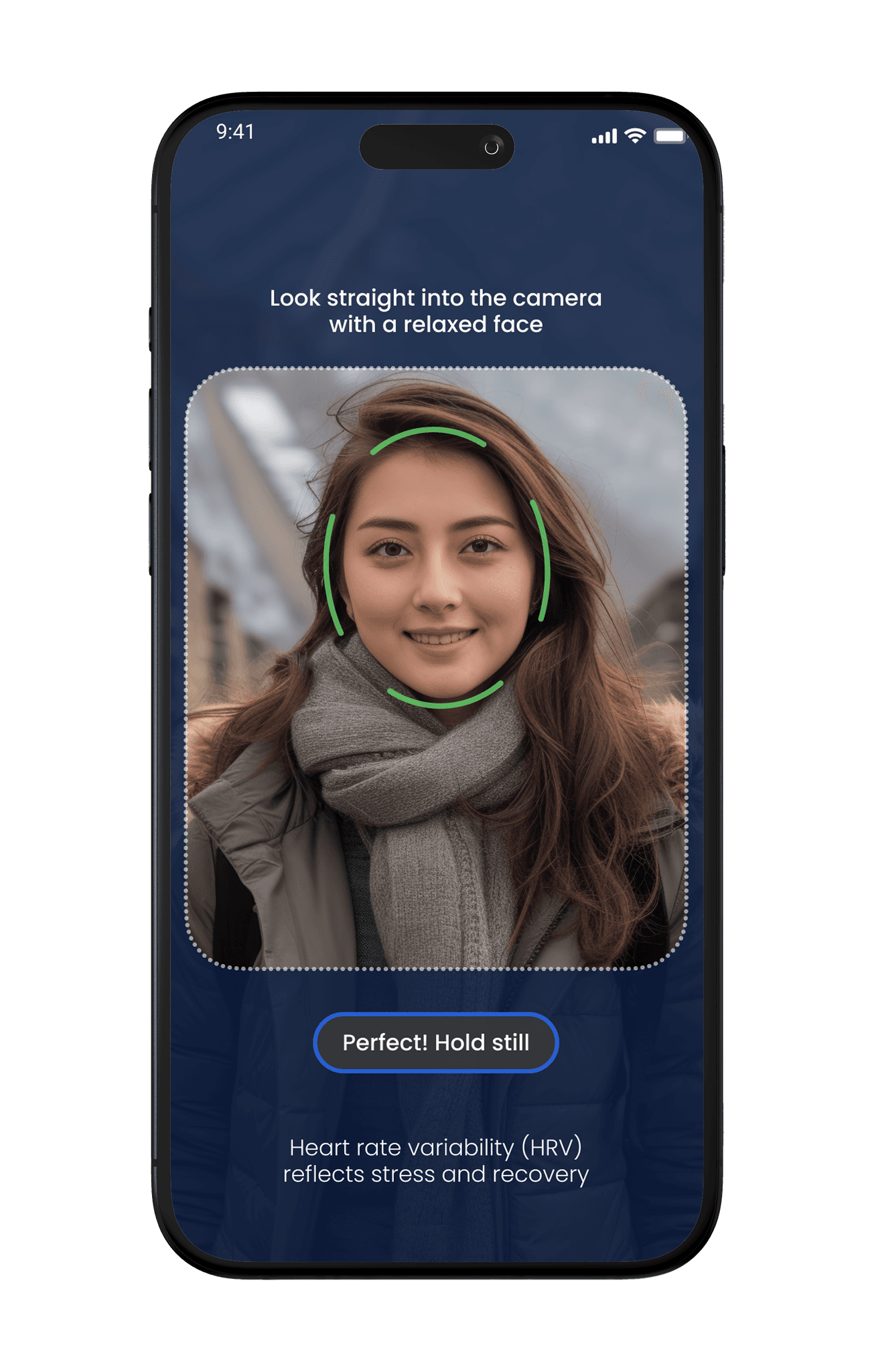 Check your heart rate and stress levels instantly. No wearables or contact required.